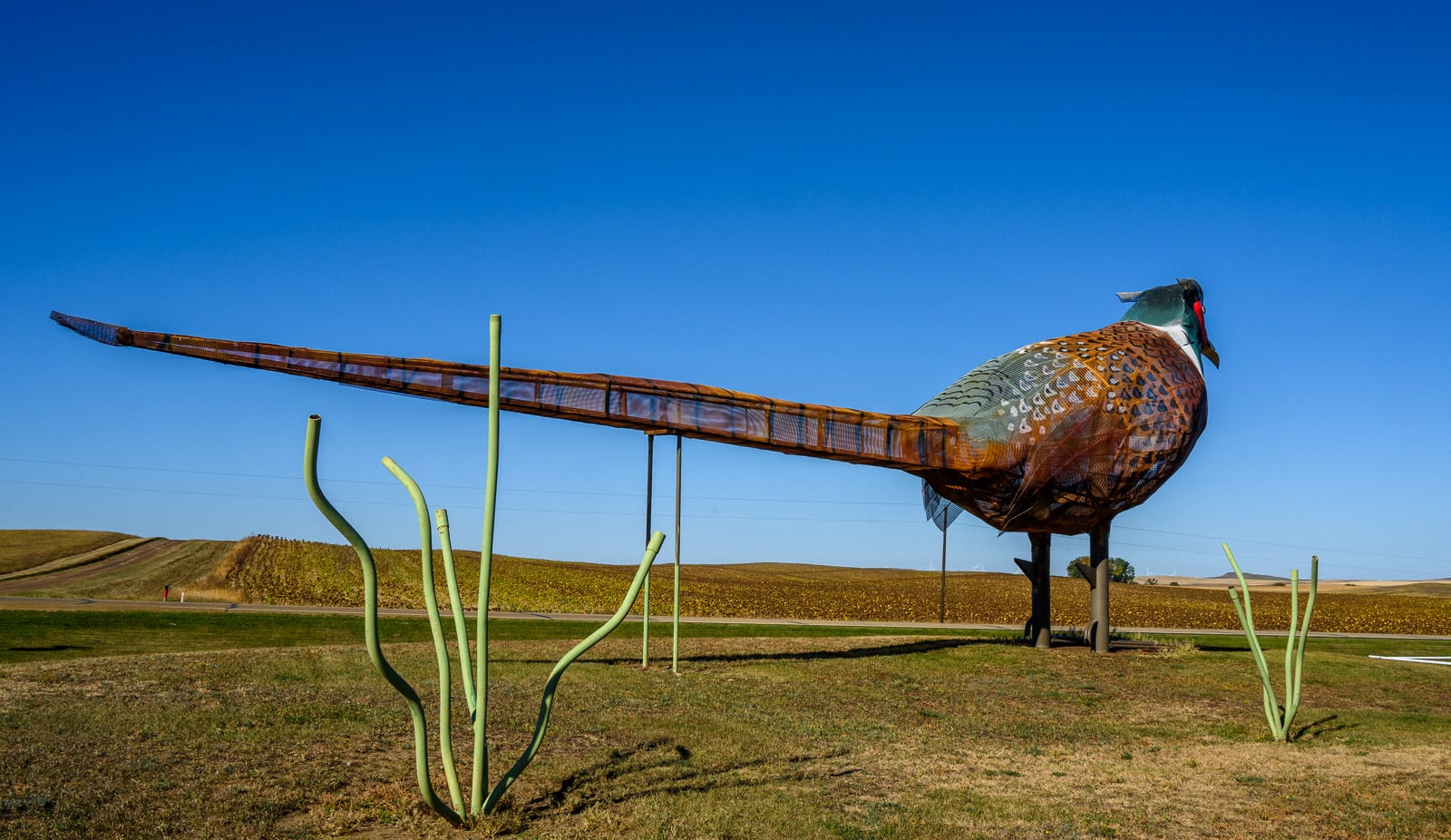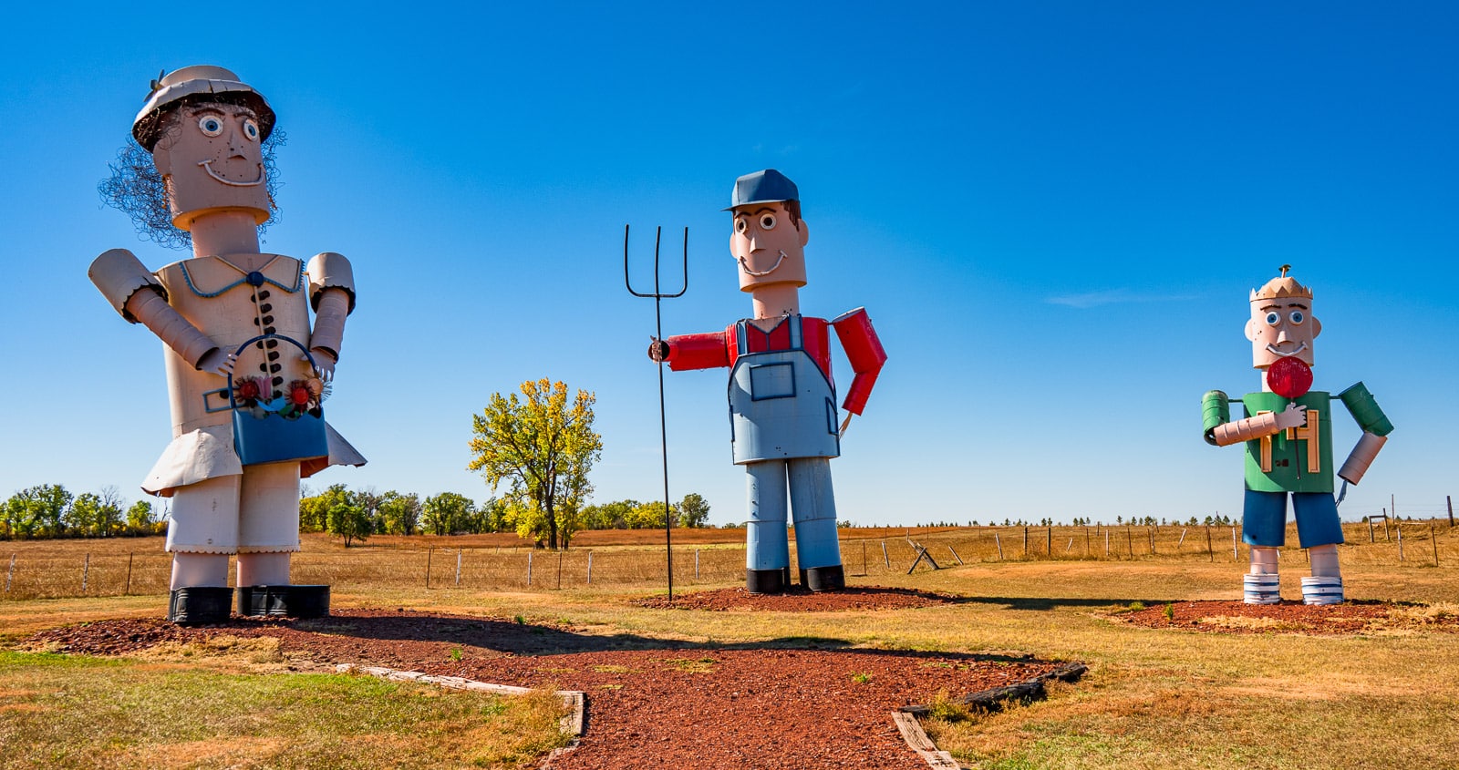 It’s Enchanting! Giant grasshoppers roam the fields. A family of pheasants browse the grasses. Fish leap into the air. They are all part of a whimsical collection of scrap metal sculptures that entice travelers south, from I-94 to the small town of Regent, along the Enchanted Highway.